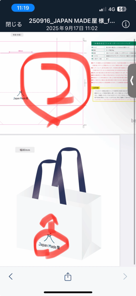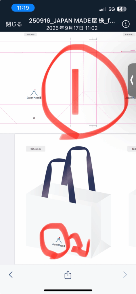 ①50㎜の小さいロゴを右下に配置依頼