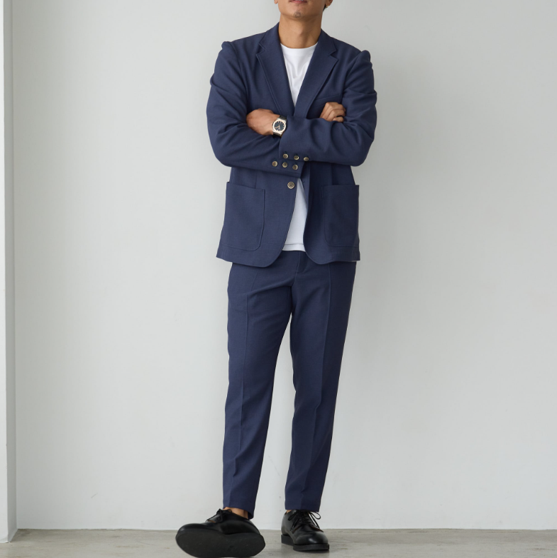 クール素材のセットアップ(左)はRELAXシリーズ