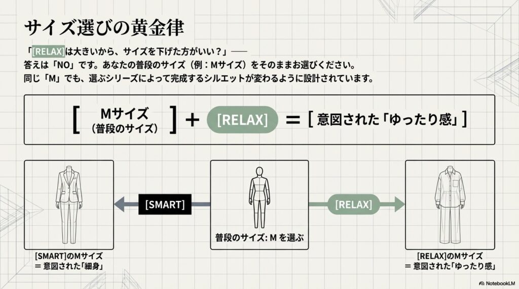 同じLサイズでもRELAXのLサイズは
