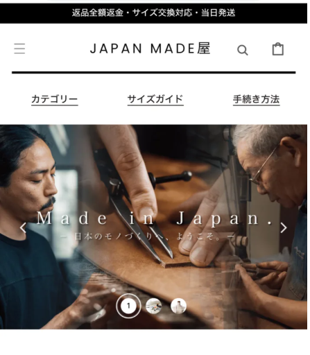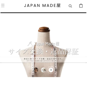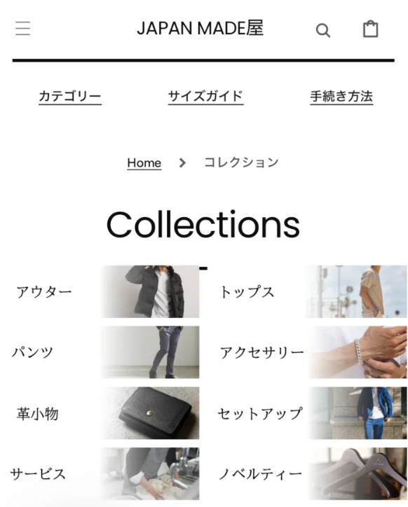 「カテゴリー」「サイズガイド」「手続き方法」って